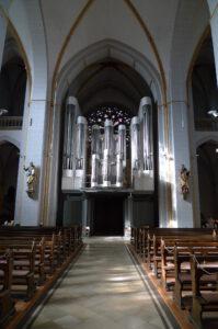 Der Plan, für die Orgel einen angemessenen neuen Standort zu finden, ging in unserer Vorstellung zunächst nicht über den europäischen Raum hinaus, bis die Mail eines brasilianischen Paters alles veränderte. Im Frühjahr 2023 gab es ein erstes Planungstreffen in der Basilika nahe Sao Paulo, an dessen Ende klar war, wie das Instrument in der Kirche aufgebaut werden könnte. Das Schwellwerk steht nun nicht mehr hinter dem Hauptwerk, sondern darunter. Die Pedalseiten werden getauscht, sodass die kürzeren Türme nach außen rücken und den Verlauf des Gewölbes mitmachen. Das Hauptwerk erhält einen neuen Freipfeifenprospekt, damit möglichst viel vom großen Rosettenfenster zu sehen bleibt.